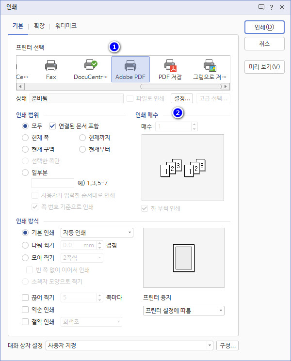 한글(HWP) 문서를 PDF 파일 변환시 출력이 제대로 안될때 해결 방법입니다.