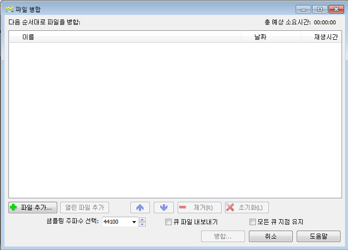 파일 병합은 여러 개의 음악파일을 불러와서 병합할 수 있게 된다.