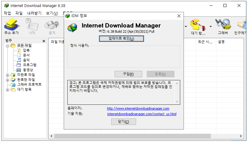 -- Internet Download Manager 홈페이지 바로 가기,